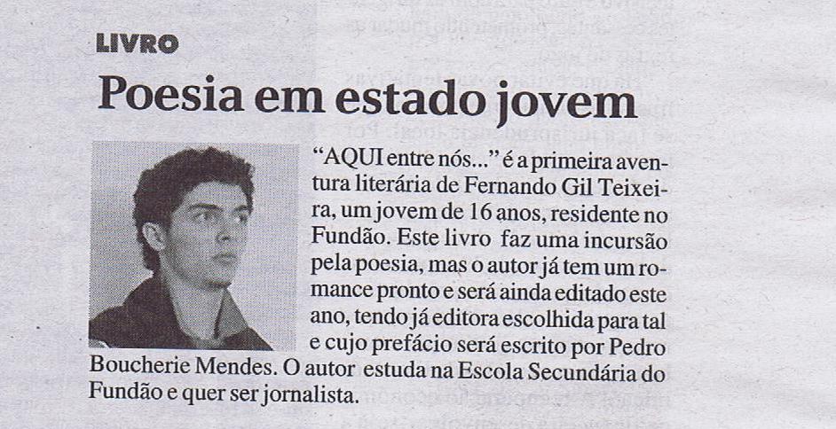 Na edição desta semana do Jornal do Fundão saiu uma notícia sobre mim. Estejam atentos!